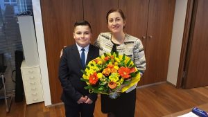 T.C. Brüksel Başkonsolosu Dilşad Kırbaşlı Karaoğlu, 23 Nisan Ulusal Egemenlik ve Çocuk Bayramı nedeniyle Koltugunu Bir süreligine Türkçe ve Türk kültürü öğrencisi 6. sınıf öğrencisi Arda Gül’e Birakti