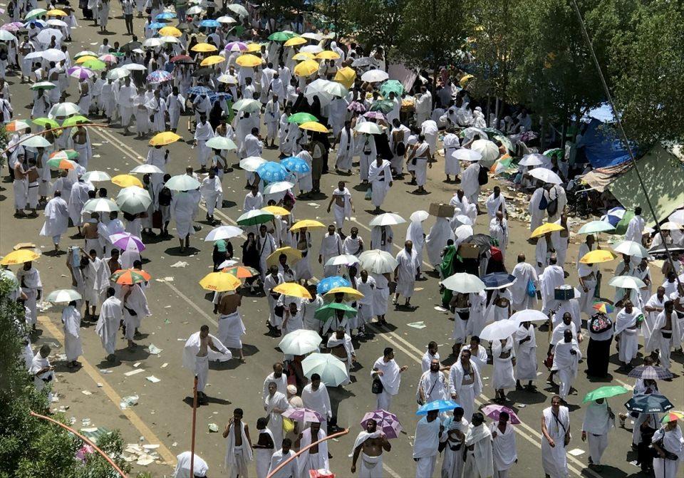 Türk hacı adaylarının Arafat’taki heyecanı sabah ezanından önce başladı. Sabah ezanıyla kılınan namazın ardından tekbirler, telbiyeler, ilahiler ve kasidelerle devam eden Arafat’taki ibadet öğle vaktine kadar sürdü.