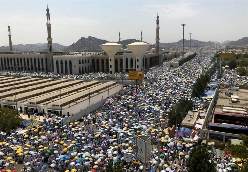 Hac farizasını yerine getirmek üzere kutsal topraklarda bulunan milyonlarca hacı adayı, Arafat’ta öğle ile ikindi namazlarını öğle vaktinde kılarak cem (cem-i takdim) etti.