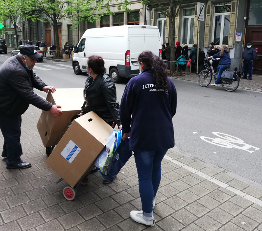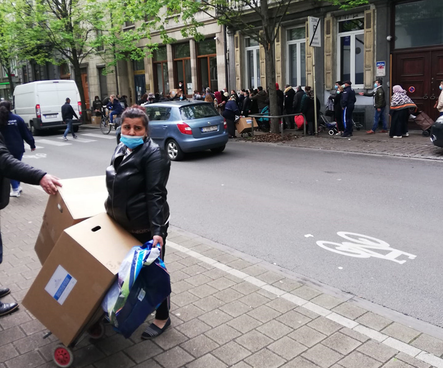 Diyanet Vakfı Müdürü Coşkun Beyazgül ve diğer çalışanlar tarafından, Brüksel’in Saint-Josse İlçesi sınırları içinde yer alan Ch.D’Haecht 67/1210 Bruxelles” adresinden bugün itibari ile dağıtılmaya başlanılan kolilerden vatandaşlar alarak evlerine götürdüler.