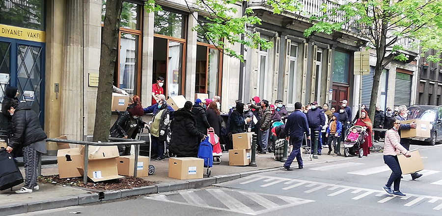 Belçika Diyanet Vakfı Başkanı Abdullah Gümüşsoy, ayrıca Ramazan ayı sürecinde her hafta  ihtiyaç sahiplerine 100 koli kumanya dağıtılacağını söyleyerek, bunun Brüksel merkezinden gerçekleştirilmeye başlandığı belirtilidi.