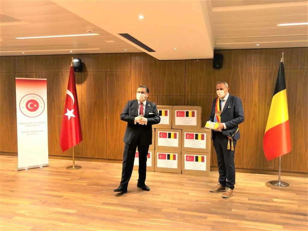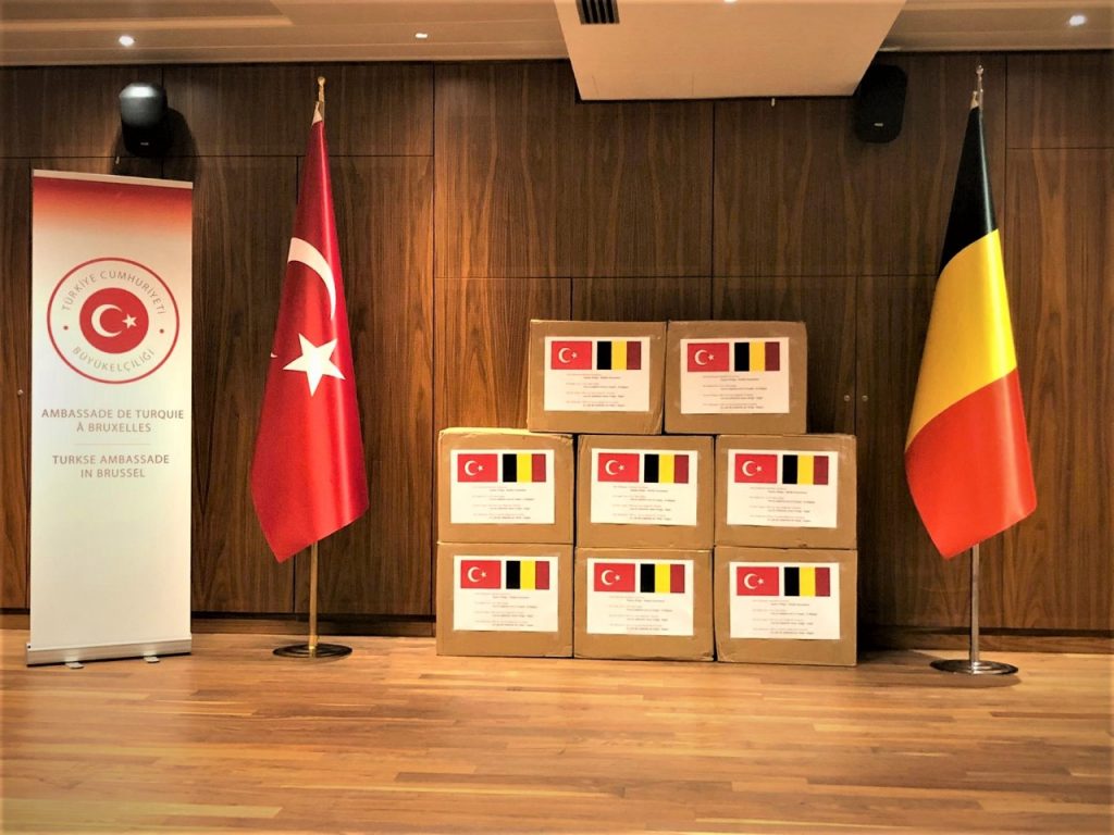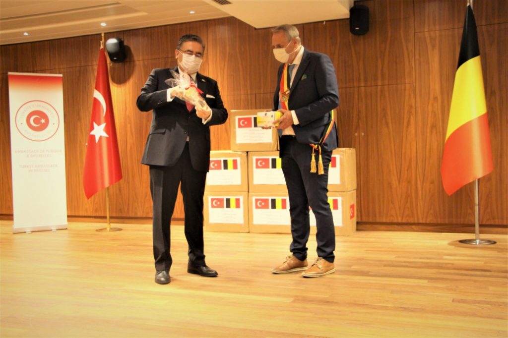 Müttefik ve dost Belçika’nın makamlarınca yapılan bu talep ülkemizce olumlu karşılanarak 20 bin adet maske yardım malzemesi gönderilmiştir. Bağışlar, T.C. Brüksel Büyükelçiliği’nde, 11 Mayıs 2020 tarihinde düzenlenen bir törenle, Büyükelçi Dr. Hasan Ulusoy tarafından Liège Valisi Sayın Hervé Jamar’a teslim edilmiştir.