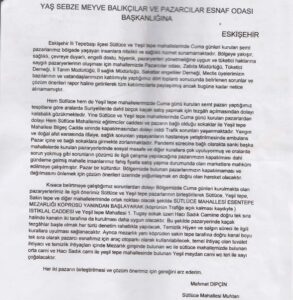 Eskişehir Kent Konseyi Sütlüce Mahalle Meclisi Başkanı Ömer Şanlı, ‘’Şimdi Pazarcılar Oda Başkanımıza soruyoruz?