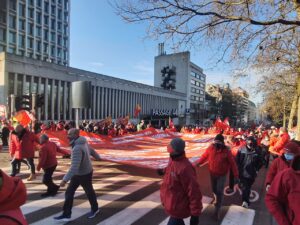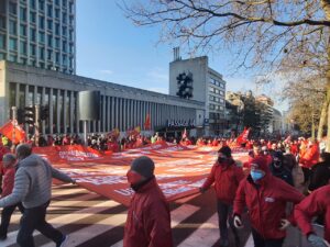Belçika’nın başkenti Brüksel’de Onbinlerce işçi, ücretlerin artırılmasına sınır getiren yasayı ve hayat pahalılığını protesto etmek için yürüyüş düzenledi.