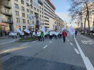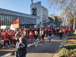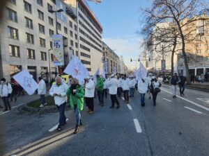 Mathilde Delsoir da « Hepimiz burada toplandık çünkü daha iyi gelirler için, satın alma gücümüz için protesto ve grev hakkımızı savunmak istiyoruz. » ifadelerini kullandı.
