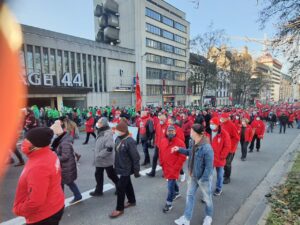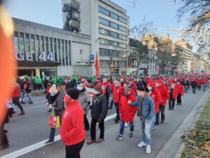 Binlerce işçi, « Her şey zamlanıyor, ücretlerimiz hariç », « Yasayı mutlaka değiştirin », « Sendikal direniş » yazılı dövizler taşıdı.