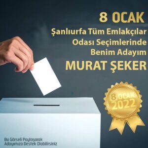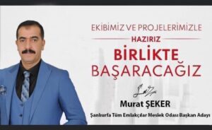 8 Ocakta gerçekleştirilecek olam Şanlıurfa Tüm Emlakçılar Esnaf Odası başkanlık seçimine adaylığınu koyan Murat Şeker, projelerini açıkladı.