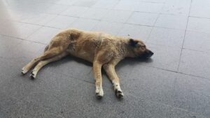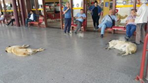 Eskişehir’de sıcaktan bunalan köpekler, serinlemek için soluğu Eskişehir otogarında aldılar. Otogarın yolcu bekleme salonun dışarı kısmında otobüs peronlarının önünde köpekler uyurken, müşteriler tarafından görüntülenen köpekler yolcuları gülümsetti.Termometrelerin 30 derecelerde olduğu Eskişehir’de; insanlar kadar sokak hayvanları da sıcaktan bunalarak, serinlemek için yer arıyor. Dışarda güneşten ve sıcak havadan bunalan köpekler serinlemek için bir yolcu otogarına girdi. Çevresinde olup bitene aldırış etmeden otobüs yolcu peronlarının önünde uykuya dalan köpekler, müşteriler tarafından görüntülendi ve gülümsetti. Otogar görevlileri; ‘’köpeklerin sıcak havalarda serinlediğini, soğuk havalarda ise ısınmak için içeriye girdiğini’’ söylediler.