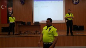 Afyonkarahisar İl Emniyet Müdürlüğü tarafından her yıl düzenlenen 2022 yılı 2. Fahri Trafik Müfettişleri ‘Eğitim ve Bilgilendirme Toplantısı’, Afyonkarahisar İl Emniyet Müdürlüğü Konferans Salonu’nda gerçekleştirildi. Toplantıya: Afyonkarahisar Trafik Denetleme Şube Müdürlüğü’nde Komser Duran Akyürek, trafik polisi Bahar Günen, Esra Aynacı ve fahri trafik müfettişleri katılılar.