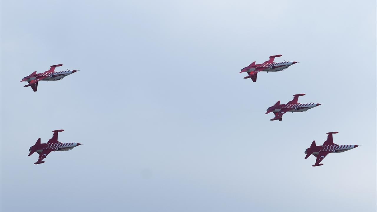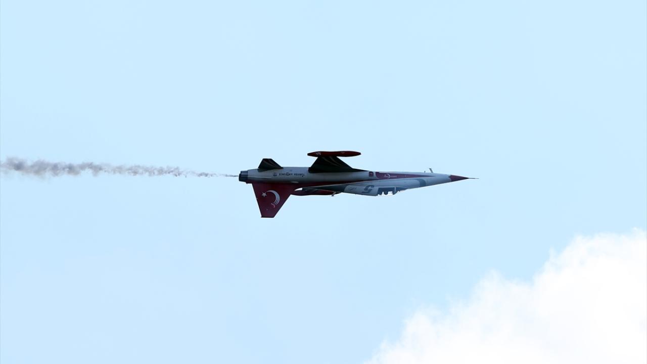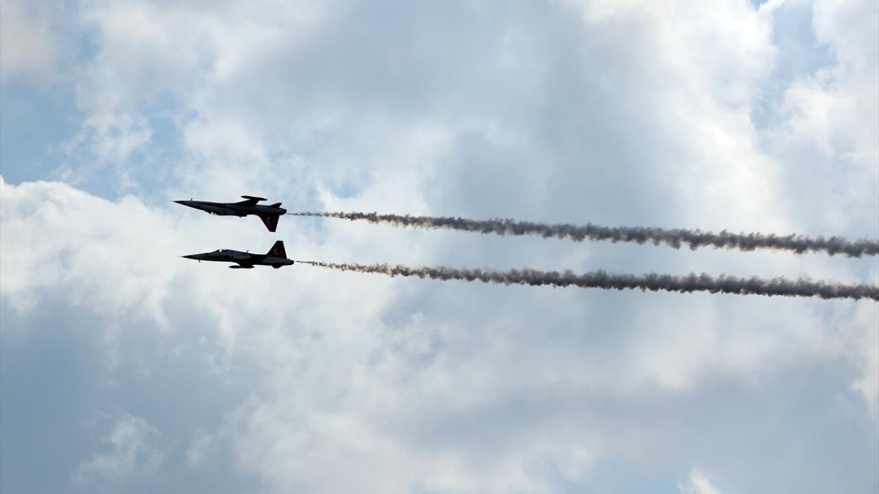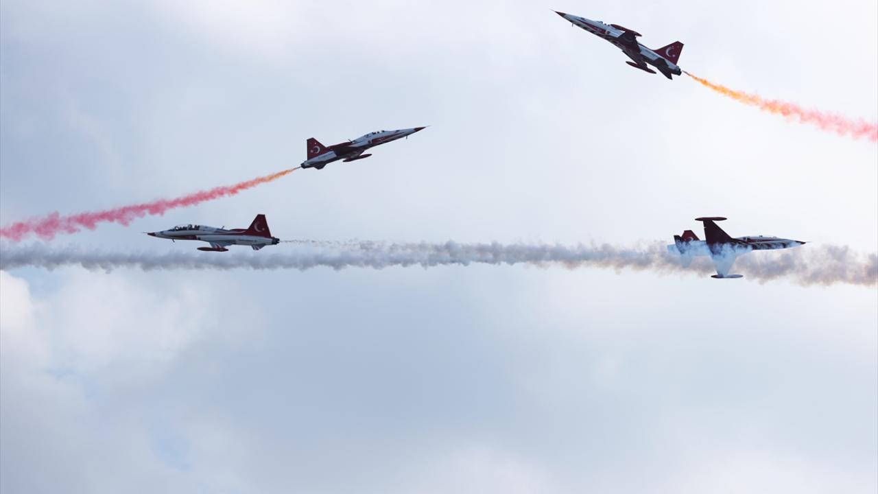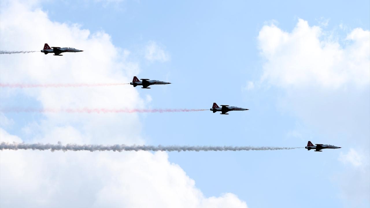 Türk Yıldızları`nın akrobasi uçuşu, organizasyona katılan binlerce izleyicinin büyük beğenisini topladı ve alkış aldı.