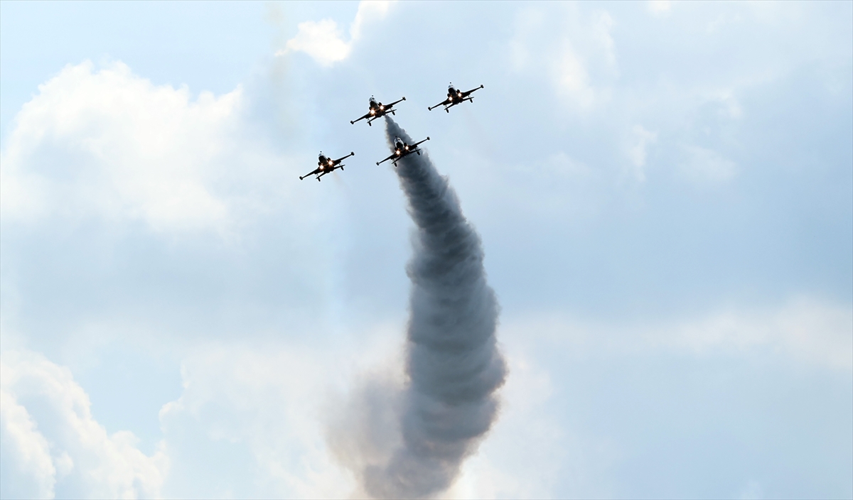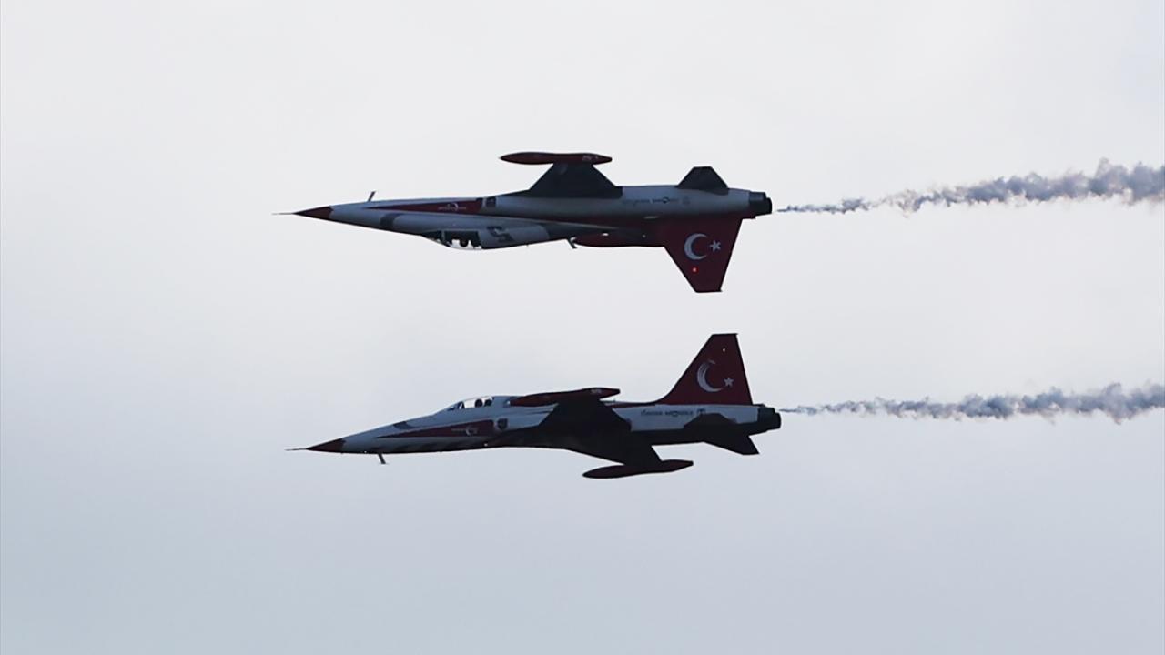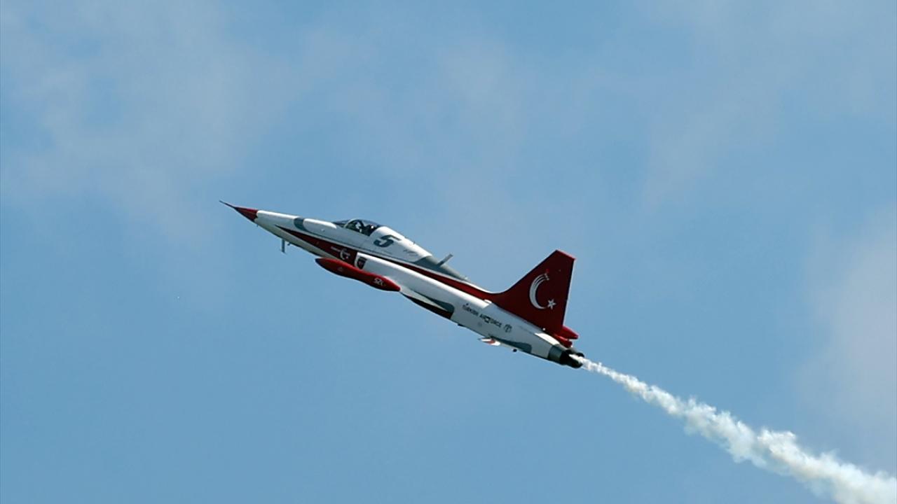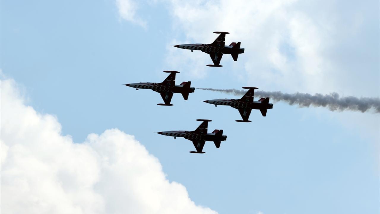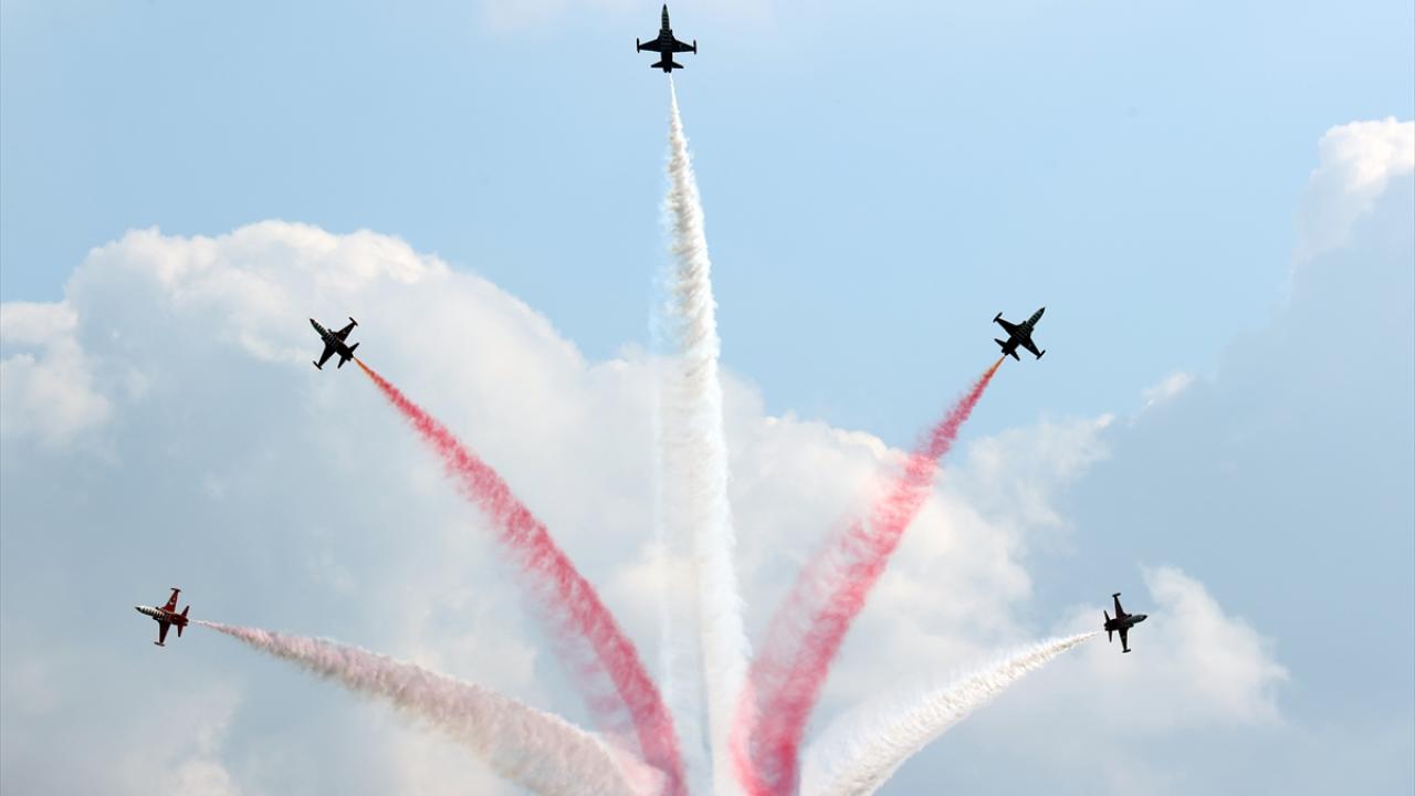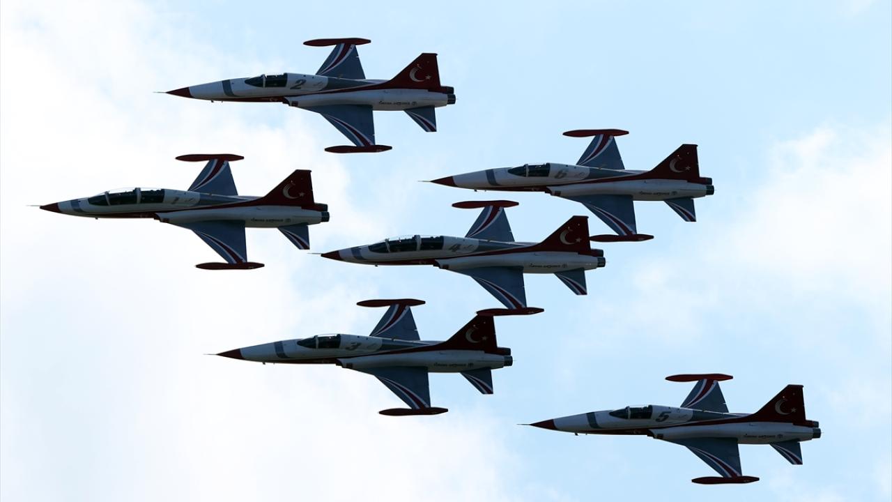 Türk Yıldızları`nın akrobasi uçuşu, organizasyona katılan binlerce izleyicinin büyük beğenisini topladı ve alkış aldı.