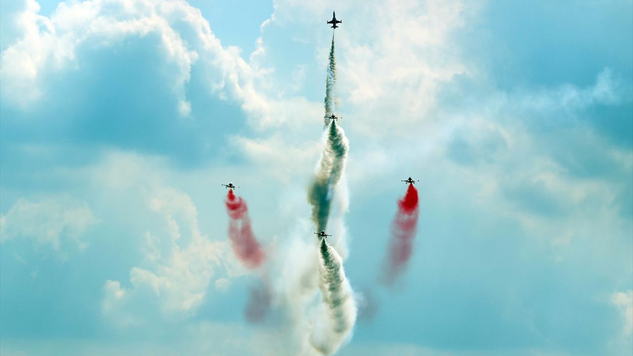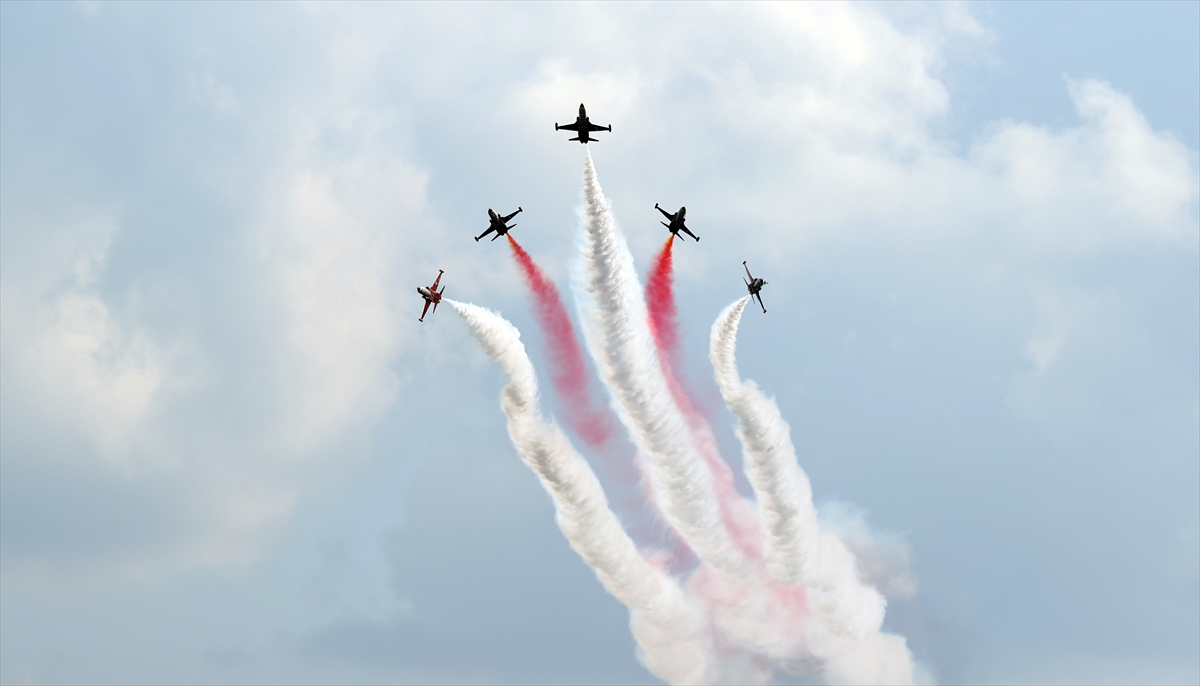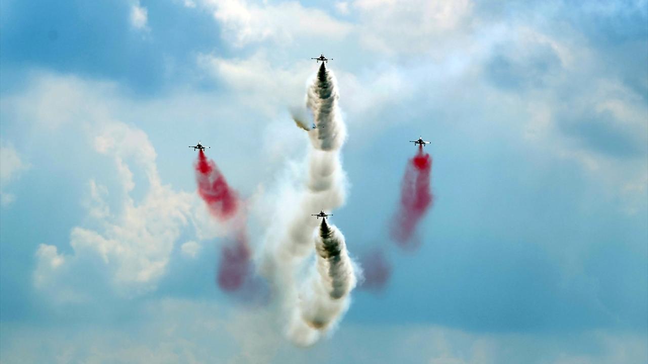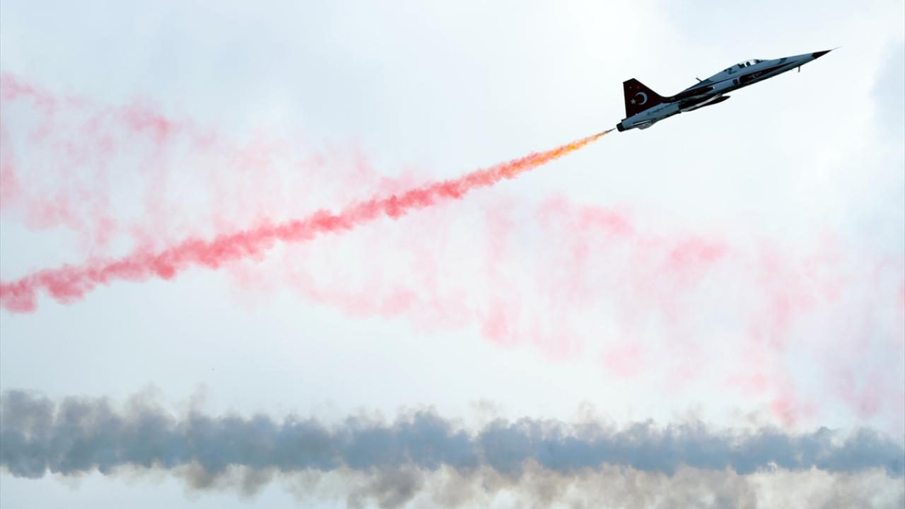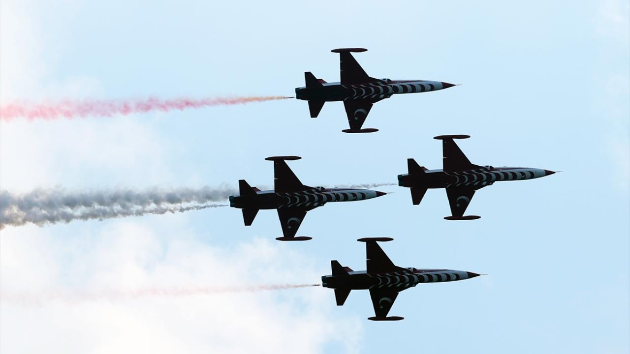 Türk Yıldızları`nın akrobasi uçuşu, organizasyona katılan binlerce izleyicinin büyük beğenisini topladı ve alkış aldı.