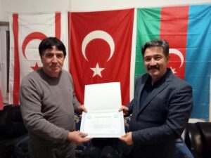 Konferansın sonunda Dernek Başkanı Ahmet Hızlan, konferansı veren ATAM Müdürü Doç. Dr. Volkan Marttin’e teşekkür belgesi takdim etti.