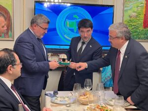 Brüksel’deki temaslarımız kapsamında Milletvekillerimiz Ali Özkaya,İbrahim Yurdunuseven.Hasan Arslan, Türkiye Brüksel Büyükelçimiz Barış Tantekin, Belediye. Başkanlarımız Serkan Koyuncu, Halil İbrahim Bodur, Eurovia Başkanı Oğuzhan Bahadır Arı ve heyetimizle birlikte Türkmenistan Büyükelçisi Sayın Sapar Palvanov’u ziyaret edildi.