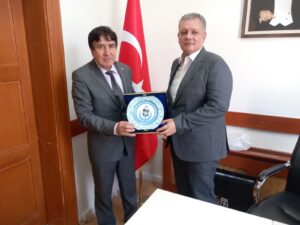 Ziyaret sonunda: Dernek Başkanı Ahmet Hızlan, Eskişehir Vali Yardımcısı Abdülhamit Karaca’ya plâket takdim etti.