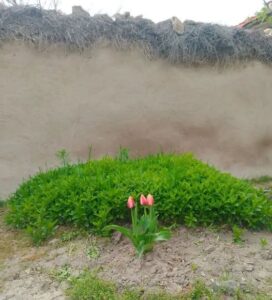 Sıva işi bittiğinde kırlardan yeşil diken diye adlandırılan çalı şeklinde dikenlerden getirilip duvarın üzerine konulurdu. Üzerine taş konup sıkıştırılırdı. Yağmurların duvarın eritmesini önlemek, duvar ve sıva arasına su girmesini önlemek amacıyla yapılan bir işlemdi. Dikenler 2-3 yılda bir değiştirilirdi…. Bugün itibarıyla Camilide laleler açmış……..